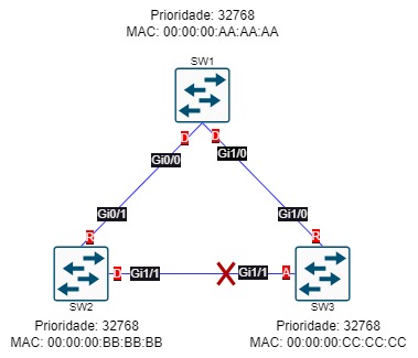 Assim, sabemos que as portas Gi 0/1 no switch 2 e Gi 1/0 no switch 3 serão as root ports.