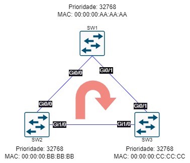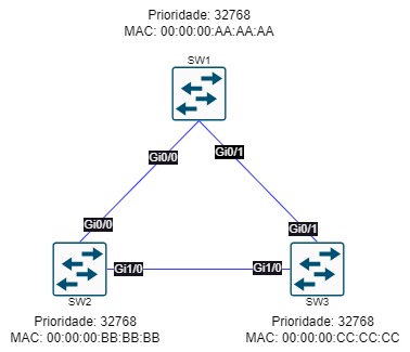 2. Por padrão, todos os switches possuem uma prioridade de 32768 (este valor pode ser alterado através de configurações, mas para o exemplo utilizaremos o valor padrão);