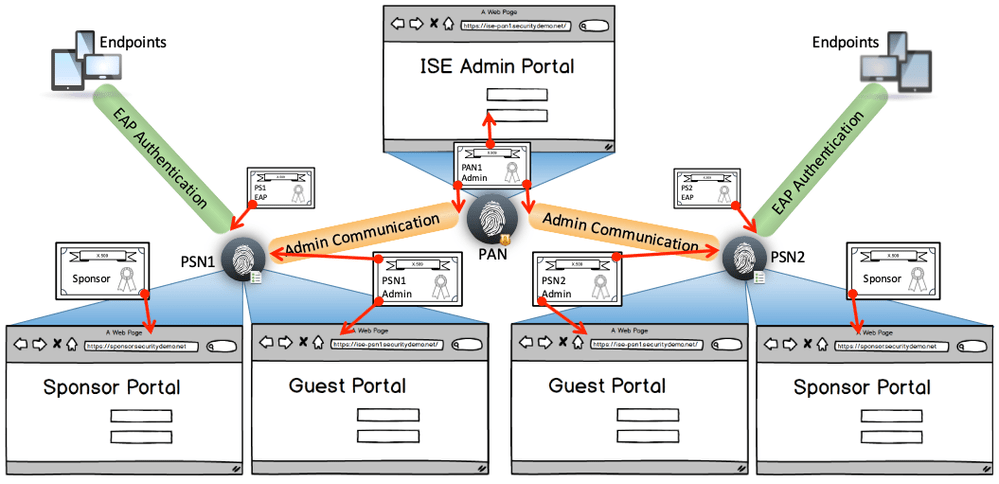 Aqui vamos abordar os três modelos recomendados para uso de certificados em um ambiente ISE distribuído.