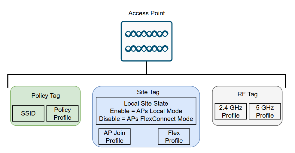 Na Catalyst 9800, três tipos de Tags são usados para definir o comportamento completo de um Access Point: